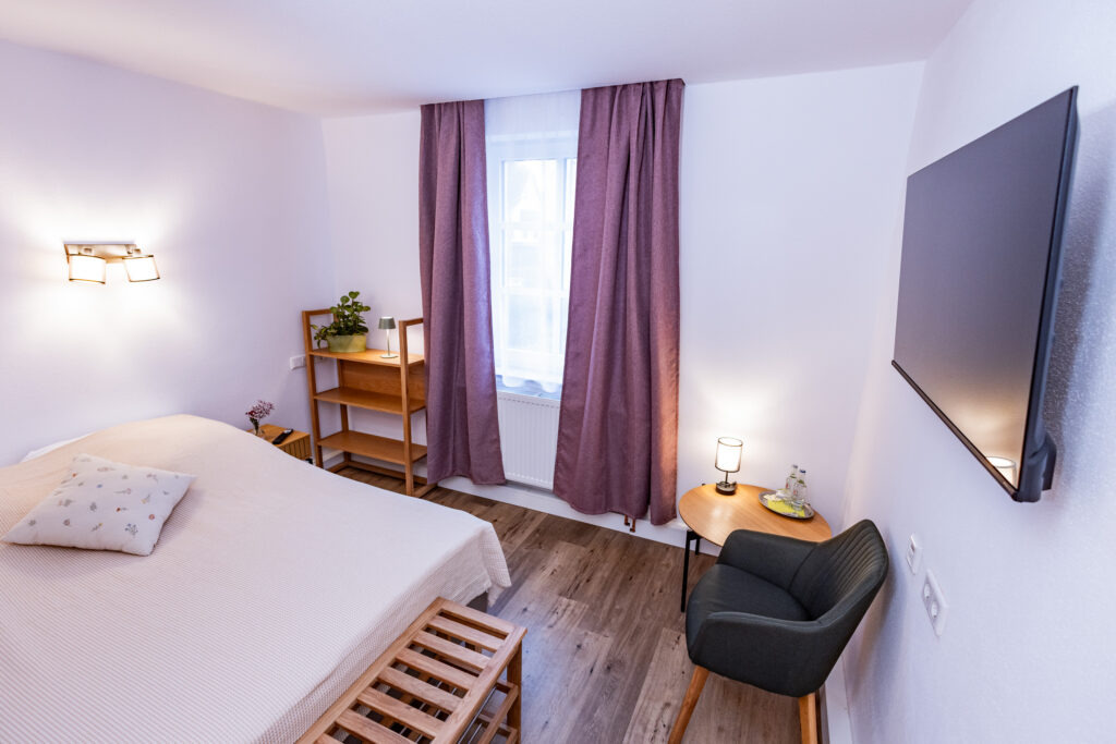 Insgesamt finden Sie bei uns acht modern ausgestattete Hotelzimmer. Alle Zimmer sind in 2024 komplett renoviert worden und haben neue Bäder erhalten.